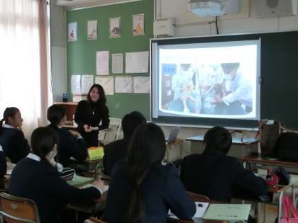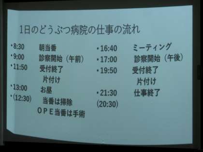 写真は、保育士の方と獣看護士の方の講話のようすです。