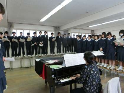 本日6限、音楽室にて卒業式の歌の練習をしました。