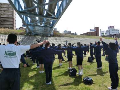 しっかり体操をして、女子が出発しました。