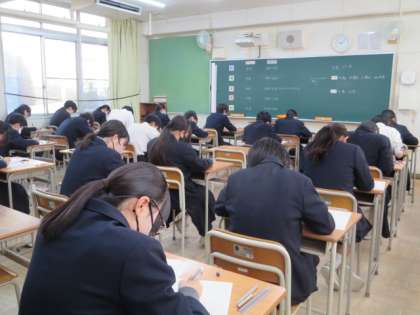 緊張感のある中で、生徒たちは試験を受けています。