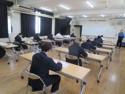 多目的室で試験を受けている生徒の様子です。