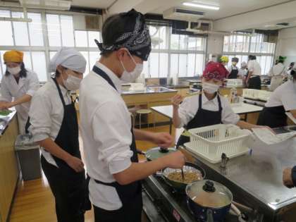 昨日に引き続き、本日は2年生が調理実習をしています。
