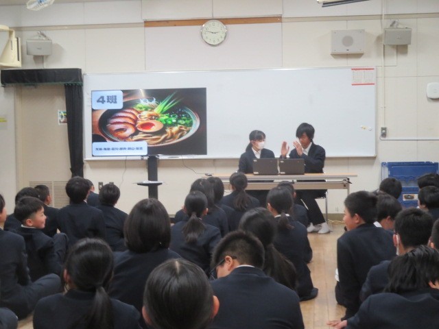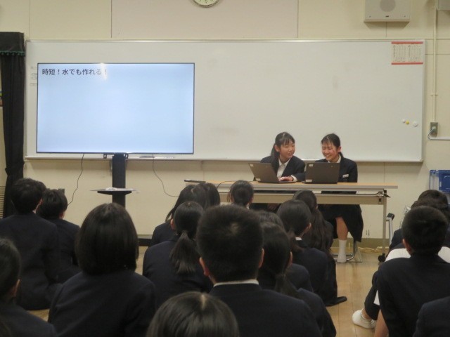 本日、1年生は「50年後のカップラーメンを考えよう」テーマをもとに、プレゼン大会を行いました。