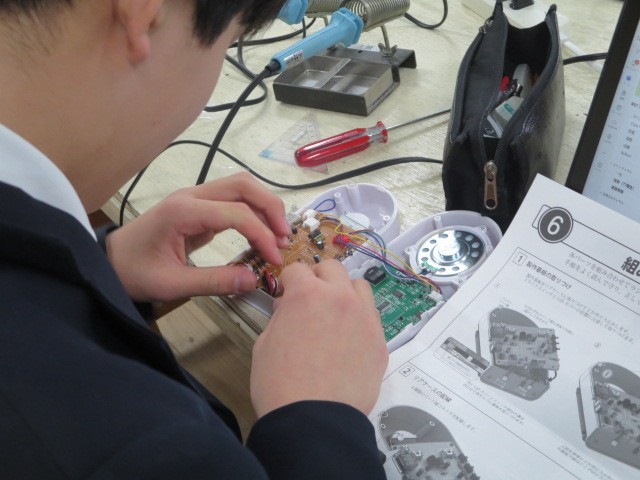 2年3組の5限、技術室でラジオの組み立てをしました。