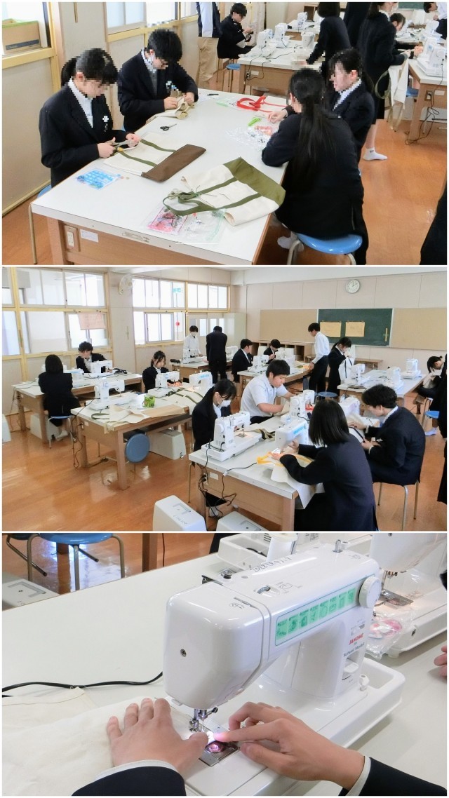 3年生の家庭科の学習の様子です。2年生からの継続の被服実習です。