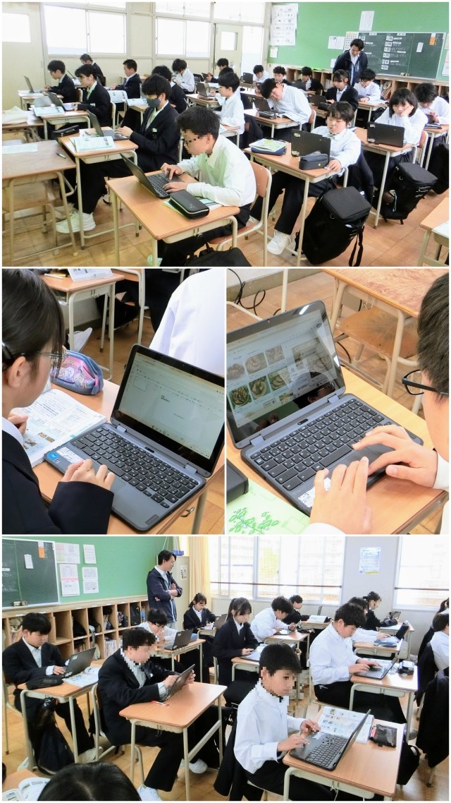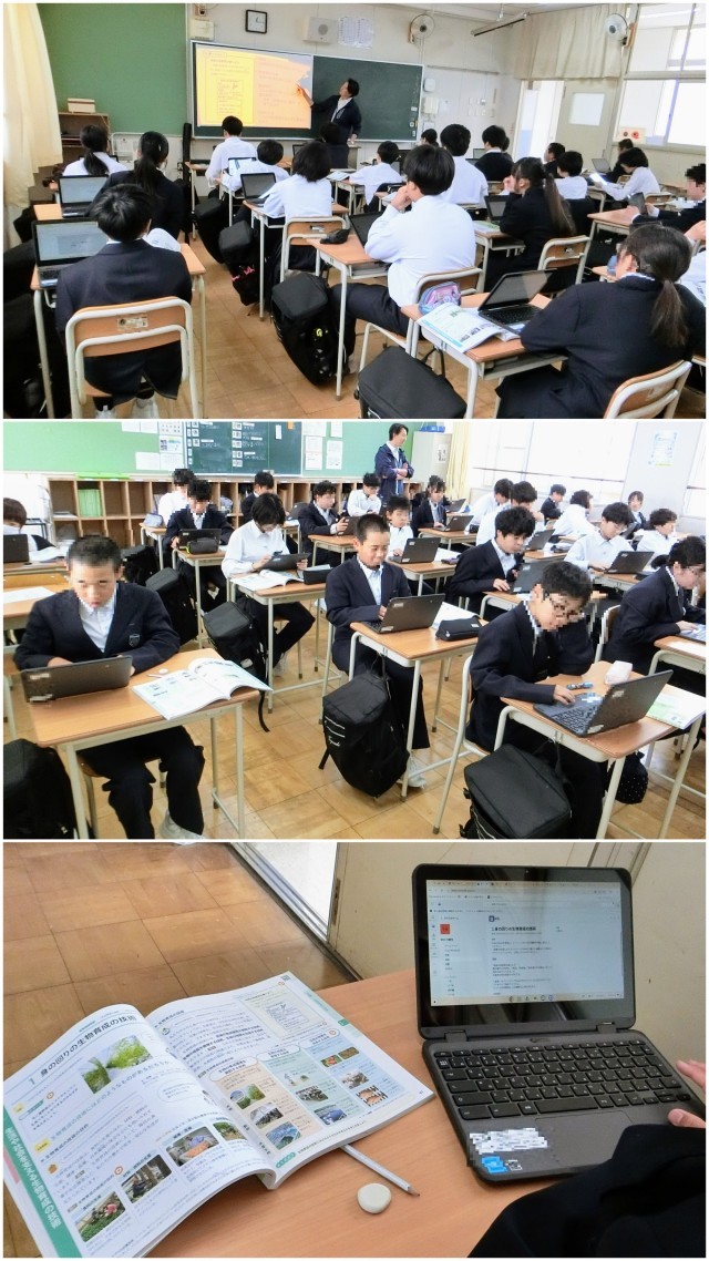 今日の1年生の学習では、「生物育成の技術」で、この時間では、まず目的である「食料の生産」「材料・燃料の生産」「健康・医療」「自然環境の保全」について触れました。