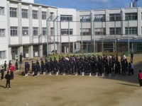 快晴の下、まだまだ肌寒さが残る中、全校集会がありました。 3年生にとっては最後の...