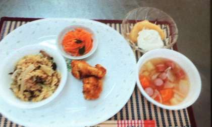 調理室にて。皆さんの感想「ハニータンドリーチキンも美味しかった」