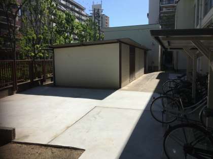 写真は、営繕作業員さんと管理作業員さんにコンクリート補修していただいた体育館横駐輪場の様子です。きれいにしていただいてありがとうございます!