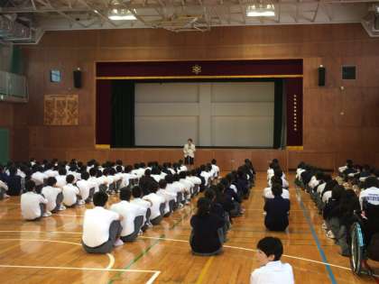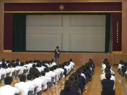 本日、「いじめについて考える日」です。学校長、生徒会、生徒指導主事より講話があり、いじめについて共有しました。