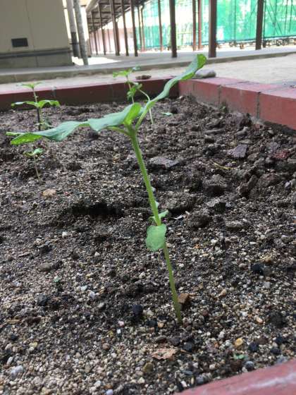 美化委員がまいてくれたヒマワリの種、非常に成長しています!