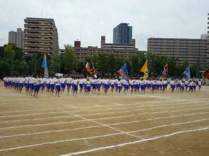 1・2時間目は、開閉会式の練習をしました。行進ではみんなが揃うまで