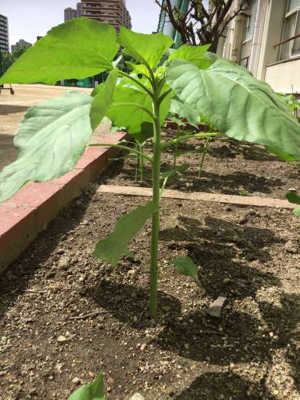 美化委員がまいたヒマワリの種が、さらに成長していました!