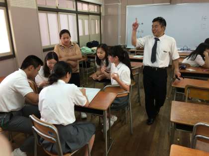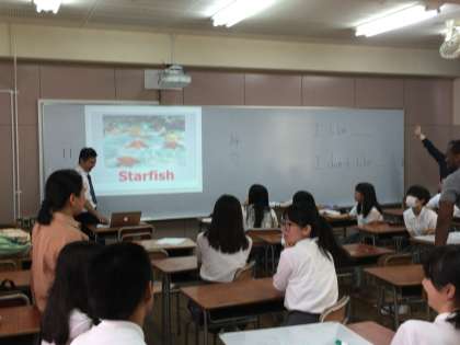 各グループに分かれて、先生から出される「お題」について英語でアイデアを出しました。生徒のみなさんは例えば「動物」というお題ではパンダやゾウなど、様々な動物のアイデアを出していました。