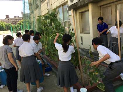 美化委員がまいたヒマワリの種が成長していく様子を学校HPでお伝えしてきました。