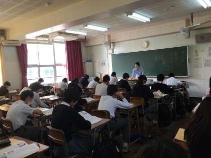 1限目には2年2組で道徳の研究授業を行いました。戦時中の話である「尊い玉子」という題材を用いて、自分にとって家族とはどのような存在かを考えました。