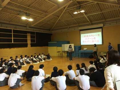 世界の国ではネパールなど複数の国がスプーンを使わずに食べているとのことで、生徒のみなさんは驚いていました。