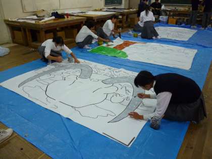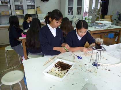 生徒は、いろいろな場所に分かれて真剣に活動していました。普段の