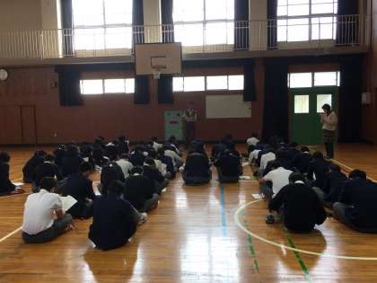 2年生は6限目、明日の職場体験事前訪問に向けて体育館で指導を行っています。