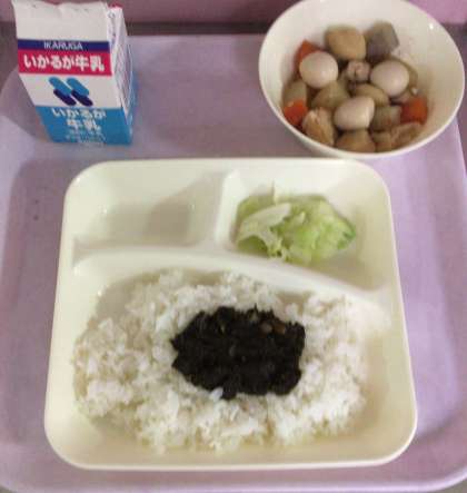 関東煮、あっさりキャベツ、のりのつくだ煮、ご飯、牛乳となっております。