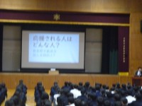 3年1組の生徒たちは授業で模擬裁判形式で、自分が裁判員になったつもりで裁判員裁判の流れを確認しました。