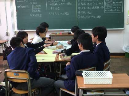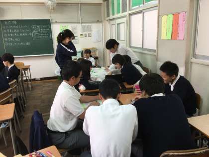 1年生は5、6限目に防災学習の取組みを行っています。
