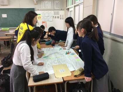昨日のフィールドワークを踏まえて、地図を作成している様子です。
