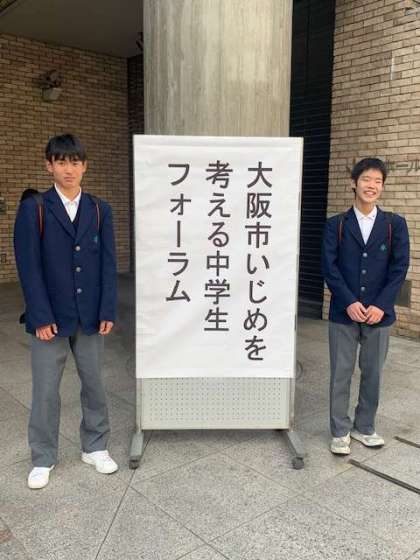 本日、阿倍野区民センターで行われた大阪市いじめを考える中学生フォーラムに生徒会役員2名が参加しました。