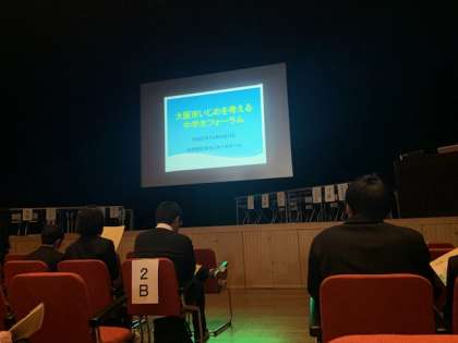 大阪市のすべての生徒会が参加し、各ブロック代表校の「いじめ」についての取り組み発表が行われました。