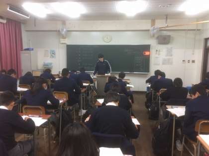本日、1、2年生で大阪府チャレンジテスト(1年生は大阪市チャレンジテストプラス)、3年生は第5回実力テスト(2日目)が開かれ、全学年熱心に取り組みました。