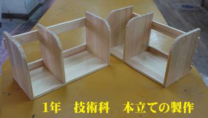 1年生は技術の授業で本立の製作に取り組み、完成しました。