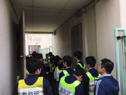 救助班を中心に支援物資を屋上の備蓄倉庫に取りに来ました! 体育館まで頑張って運びます。