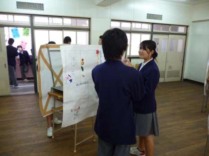 展示発表の部は、1階にパソコン部、英語科、生徒会、2階に理科、