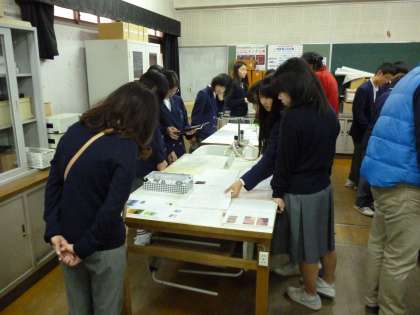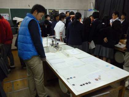 展示発表の部は、1階にパソコン部、英語科、生徒会、2階に理科、