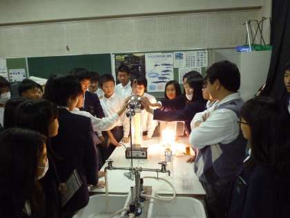 写真は、理科「自由研究・おもしろ実験」の展示の様子です。