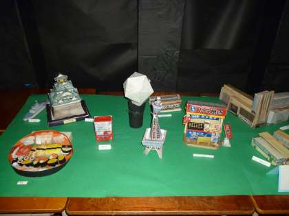 写真は、パソコン部「ペーパークラフト他」の展示の様子です。