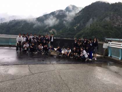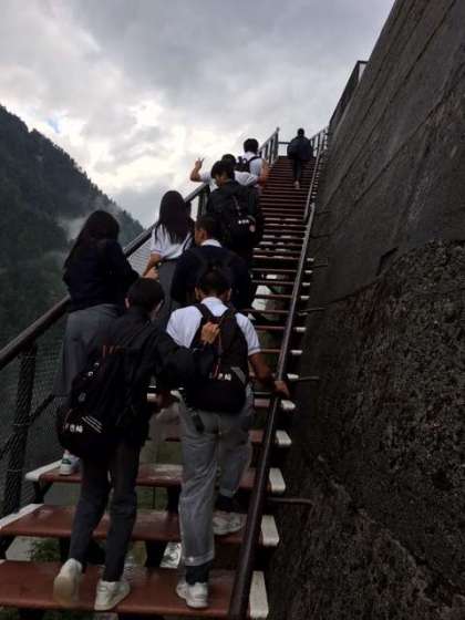 上の写真は、展望台をめざす子どもたちです。雨があがりましたので、クラス写真を撮ることができました。