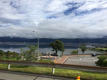 諏訪湖を通り過ぎました。順調に車山高原に向かっています。