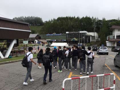 車山高原リフト乗り場に到着しました。雨は止んでいますが、霧がかかっています。