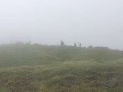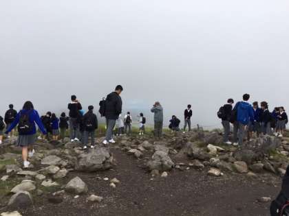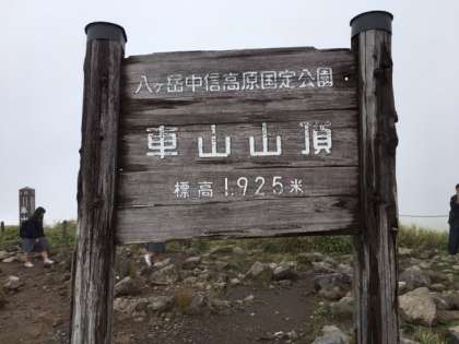 車山山頂に着きました。時折、晴れ間が現れると歓声が上がりました。しかし、すぐ霧に包まれます。