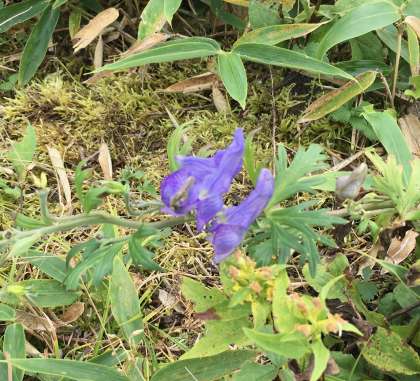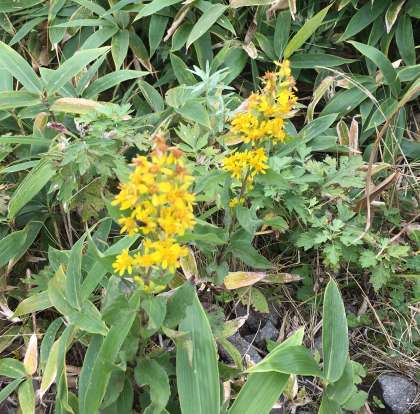 山頂付近で高原植物の花々を見ることができました。上の写真はアキノキリンソウ、下の写真はツクバトリカブトです。