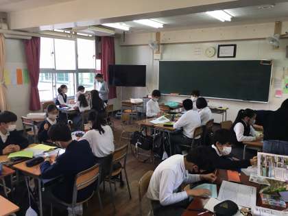6時間目、2年生が校外学習のまとめを班ごとに取り組んでいる様子です。