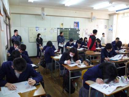 1月29日(木)の2時間目に、3年1組で英語科の辻本先生が