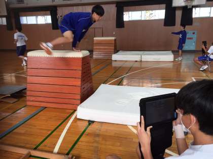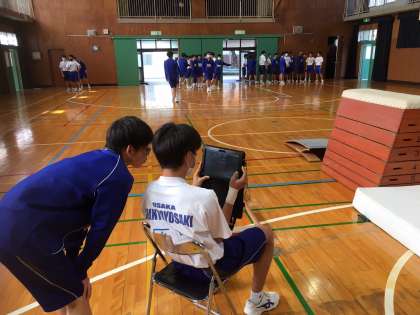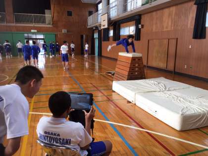 撮影した動画を10秒程度遅らせて映し出すラグミラーの機能を使用し、自分の動作をチェックしながら改善につなげています。