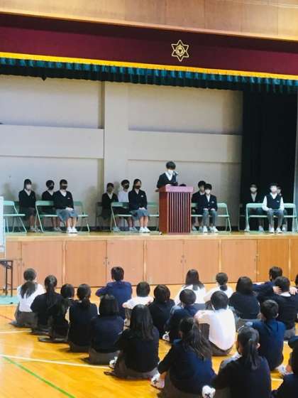 3年生が巣立った今、次代を担う5名の1・2年生が、新豊崎中学校のために立候補してくれました。選ぶ側の生徒もより良い中学校を創造してくれることを期待しています。