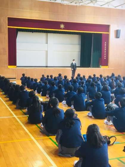 学校長からは心のもち様についての講話、生徒指導主事の先生からは春休中の生活と学習について、保健室の先生からはこれまでと今後の感染対策についての話がありました。