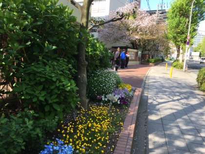 正門横の花々がきれいに咲いています。