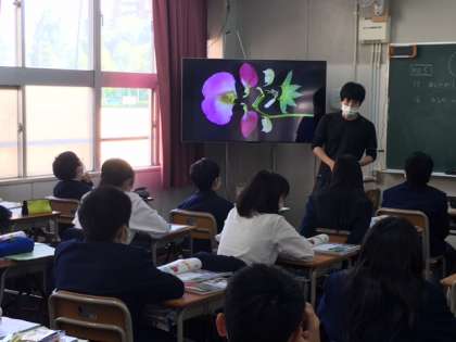 大型テレビを活用し、合弁花と離弁花の学習をしています。