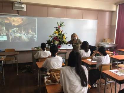 上から、フラワーアーティスト、ビューティ&ブライダル専門学校、建築設計事務所の職業講話の様子です。