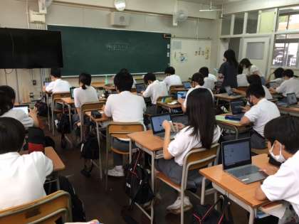 1年生では、週末課題(WeP=Weekend Project)について説明しました。これは、毎週末に全学年で取り組む自主学習習慣定着のための取り組みです。また、1人1台端末を使って「デジタルドリル」にも挑戦しました。